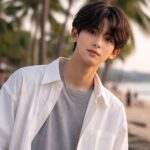彼のビジュアルは、日本の若者らしい柔らかい雰囲気と、ヨーロッパ系の彫りの深さを兼ね備えています。